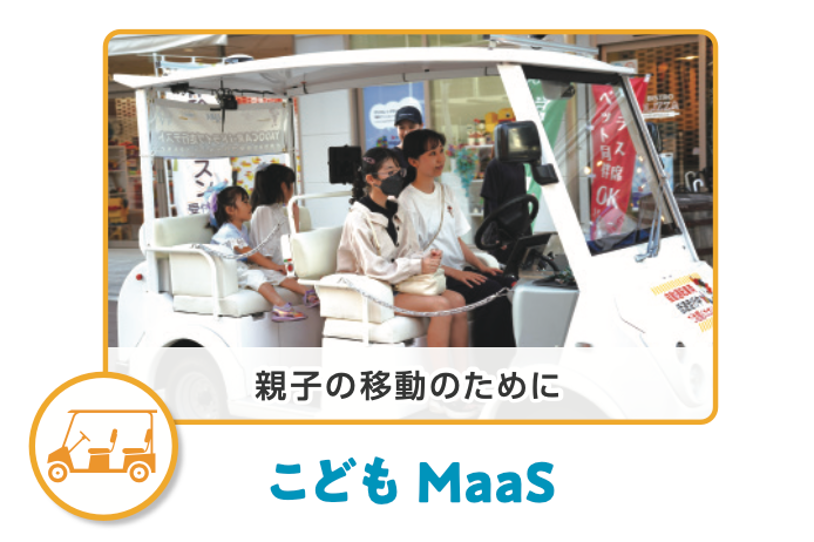 こどもMaaSは、小さな子どもを連れての外出や親子での短距離移動の負担を軽減するためのサービスです。低速の自動運転モビリティを使い、複数人で安全かつ容易に移動できる環境を提供します。子どもが安心して利用できる移動手段を確保することで、生活の満足度を高め、駅や商業施設、公園など中心部への回遊性を促し、地域の賑わいづくりにもつなげます。